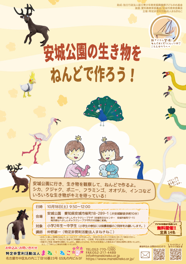 ②安城公園の生き物をねんどで作ろう!