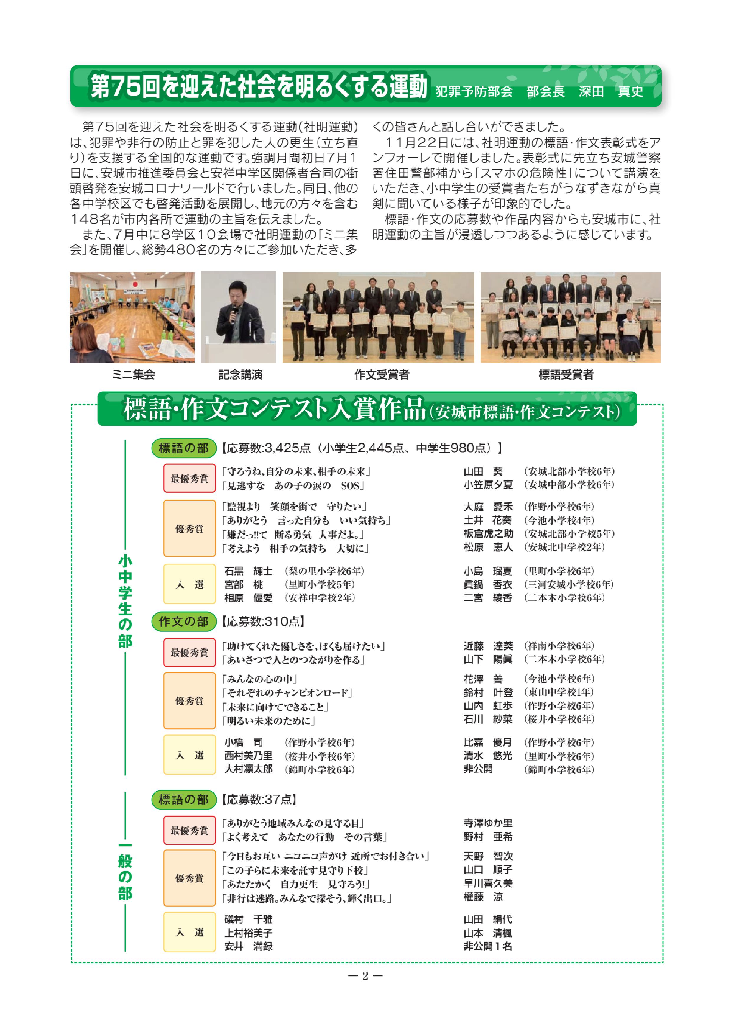 令和7年度会報を発行しました。 下記より過去10年分の会報を読むことができます。https://www.city.anjo.aichi.jp/kurasu/fukushikaigo/fukushi/hogoshikai.html