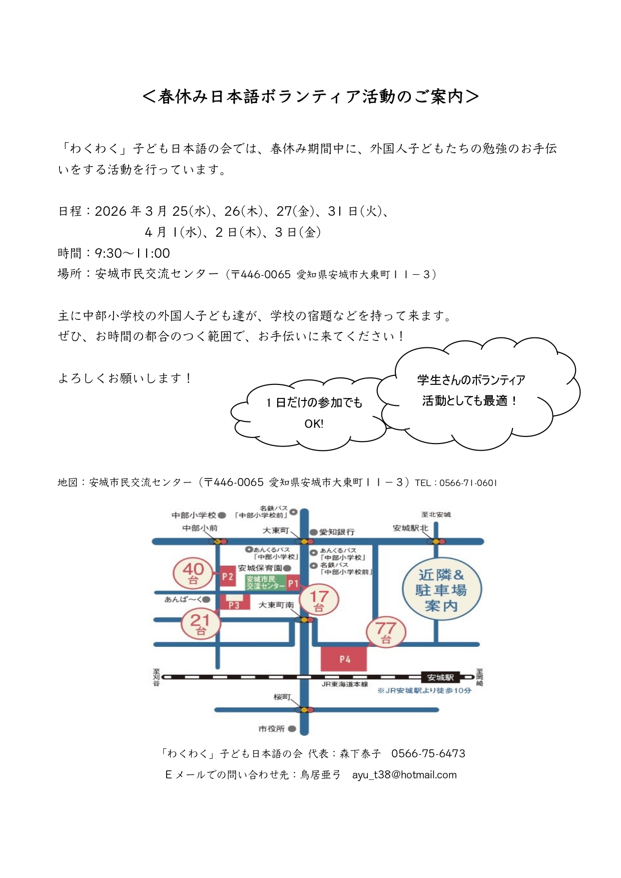 お時間の都合のつく範囲で、お手伝いに来てください!