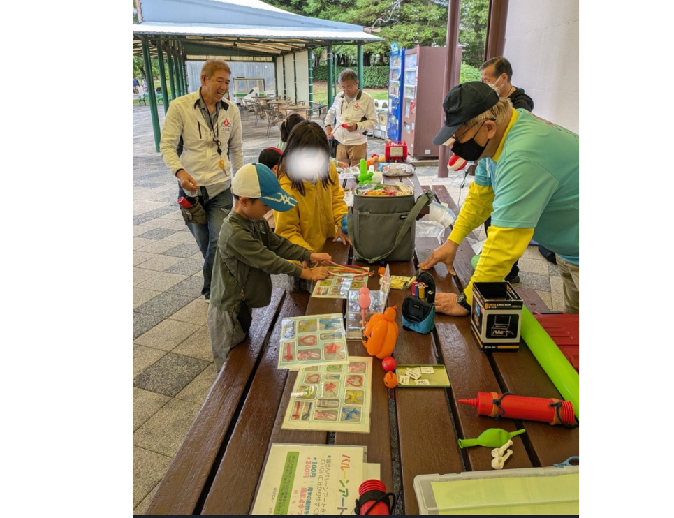 1)デンパークにん来場された皆さんにバルーンアートの制作体験実施